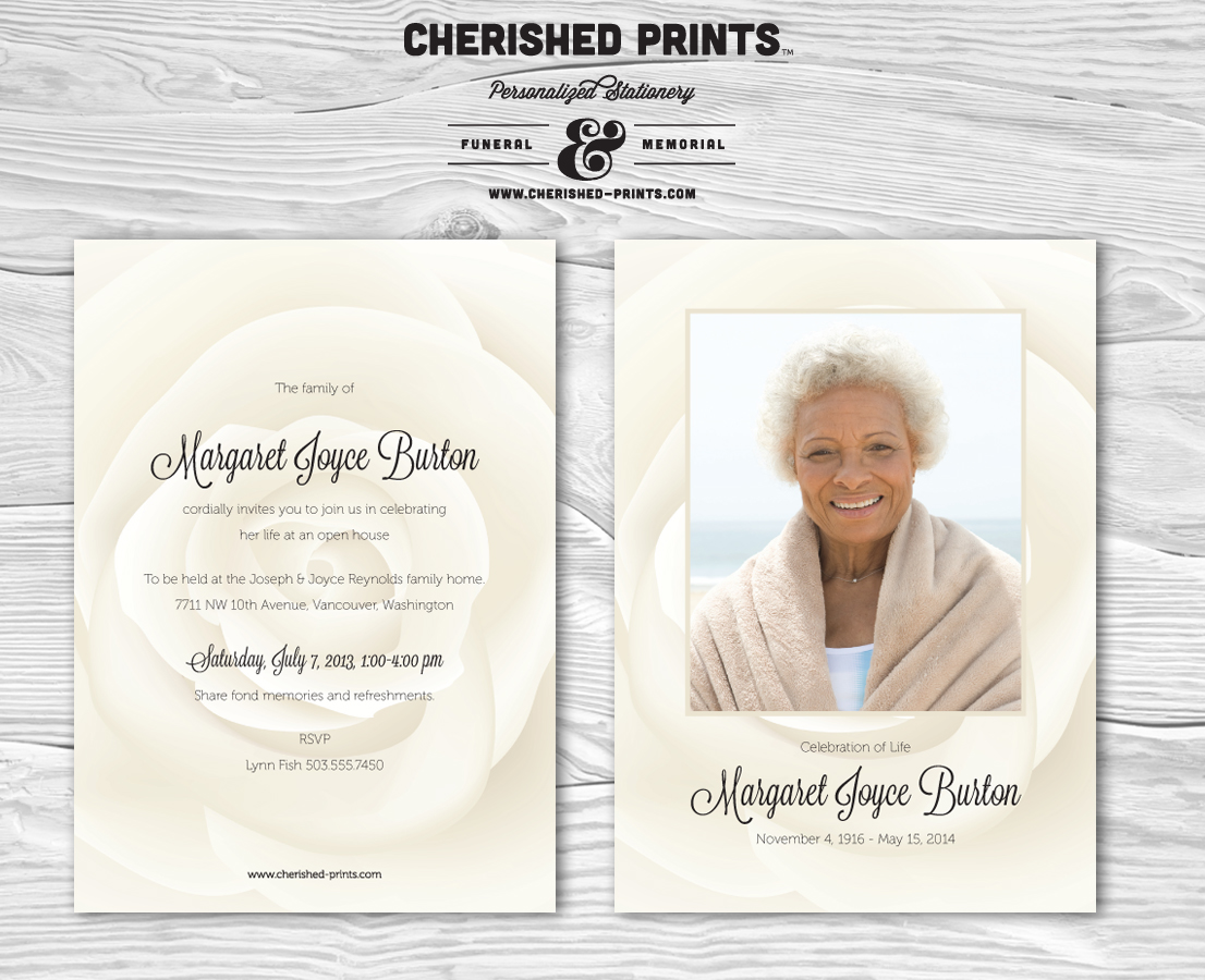 White Rose Celebration of Life Invitations and Announcements by Cherished Prints